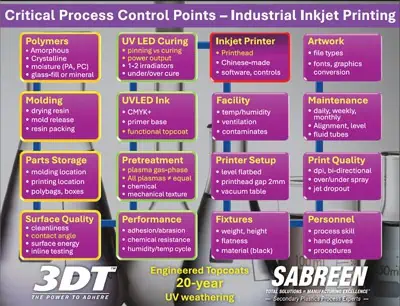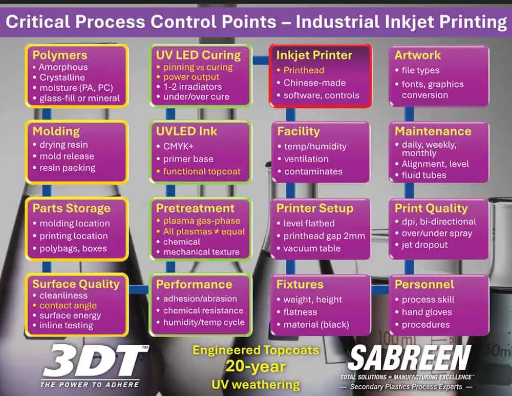 3DT understands the process intricacies relating to inks and coatings adhesion onto plastics, not only pretreatment.